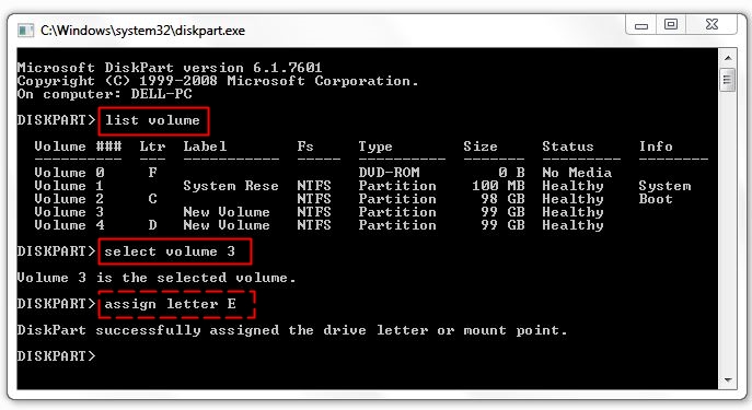 - Then type ‘assign letter E’ and again press ‘Enter’.